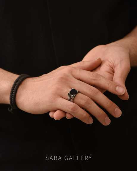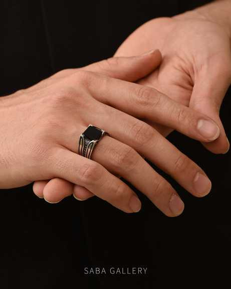 این انگشتر از نقره استرلینگ ۹۲۵ عیار ساخته شده و نگین آن از سنگ طبیعی و معدنی عقیق سیاه (Onyx) است که درخشش خاص و جلوهای باشکوه به دست میدهد.