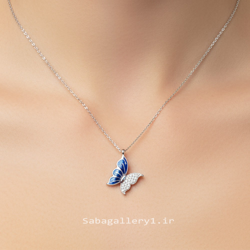 🦋 معرفی پلاک نقره دخترانه طرح پروانه آبکاری طلای سفید